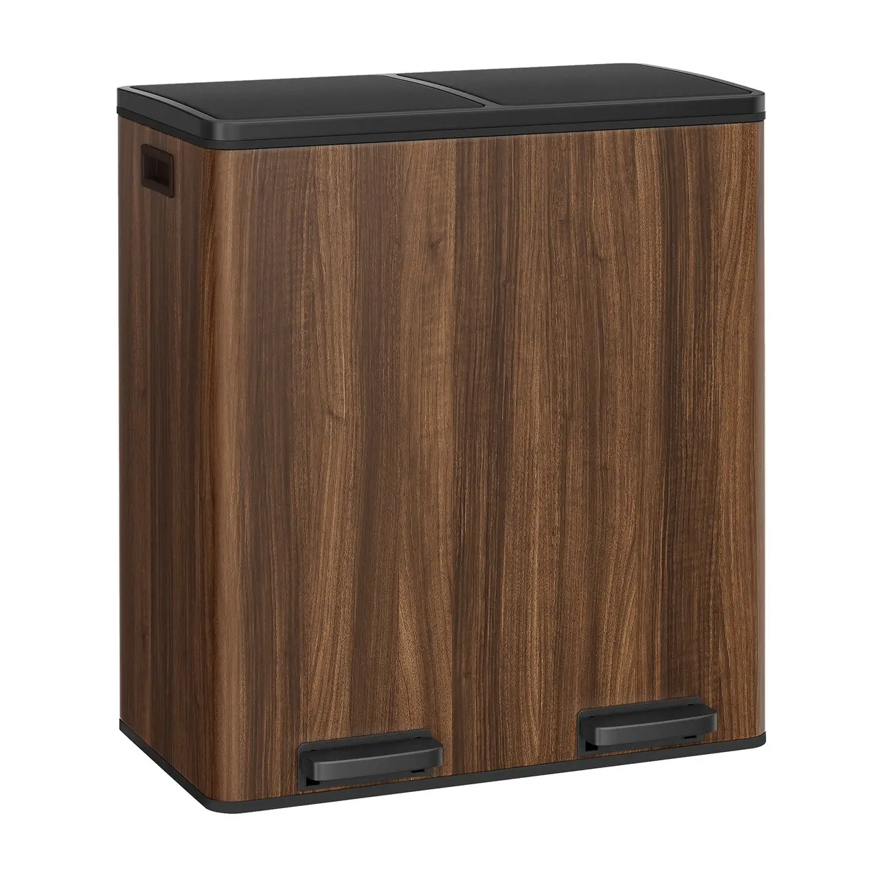 SONGMICSHOME Kitchen Pedal Bin, 2-Compartment Recycling Rubbish Bin with Soft Close Lids, for Home, Removable Inner Buckets, Walnut