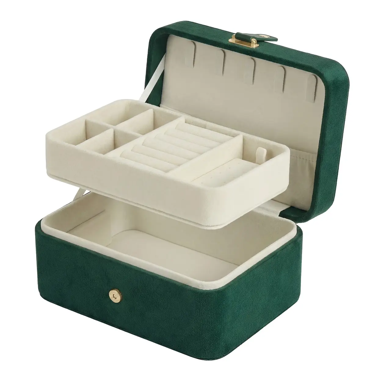 SONGMICSHOME Portable Jewelry Box, Travel Jewelry Case, 2-Layer Jewelry Organizer, for Larger Accessories, PU Surface, Gift, Green