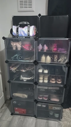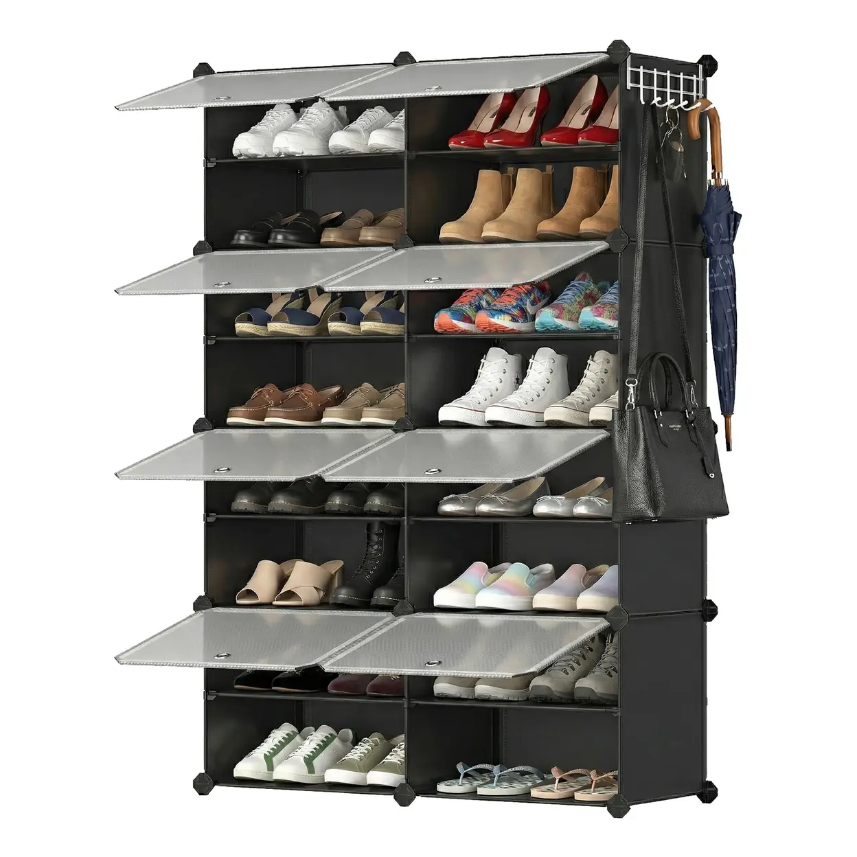 SONGMICSHOME Shoe Storage Unit with 8 Compartments, Adjustable Hallway Shelf, Cabinet for up to 32 Pairs, Black-Transparent
