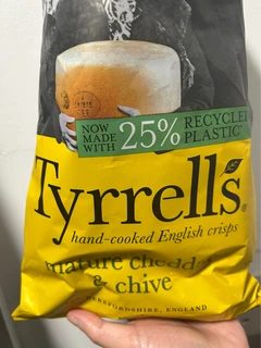 Tyrrells Hand-Cooked English Crisps Mature Cheddar & Chive 150g