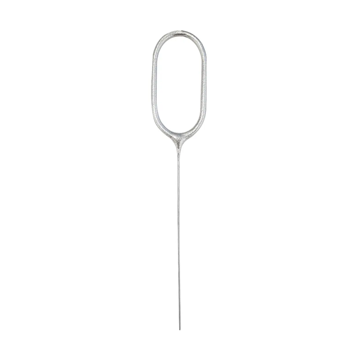 Featuring a silver number "0" shape, this cake sparkler can be combined with other number sparklers to add an impressive display of indoor fireworks to a silver themed milestone birthday party or to an anniversary event. Place the sparkler upright into a baked cake so that it cannot fall over, and light from the top to watch the sparks fly! The sparkler should not be held in the hand or given to children under 5. Indoor sparklers should be used under adult supervision, and should only be sold to those over 16.