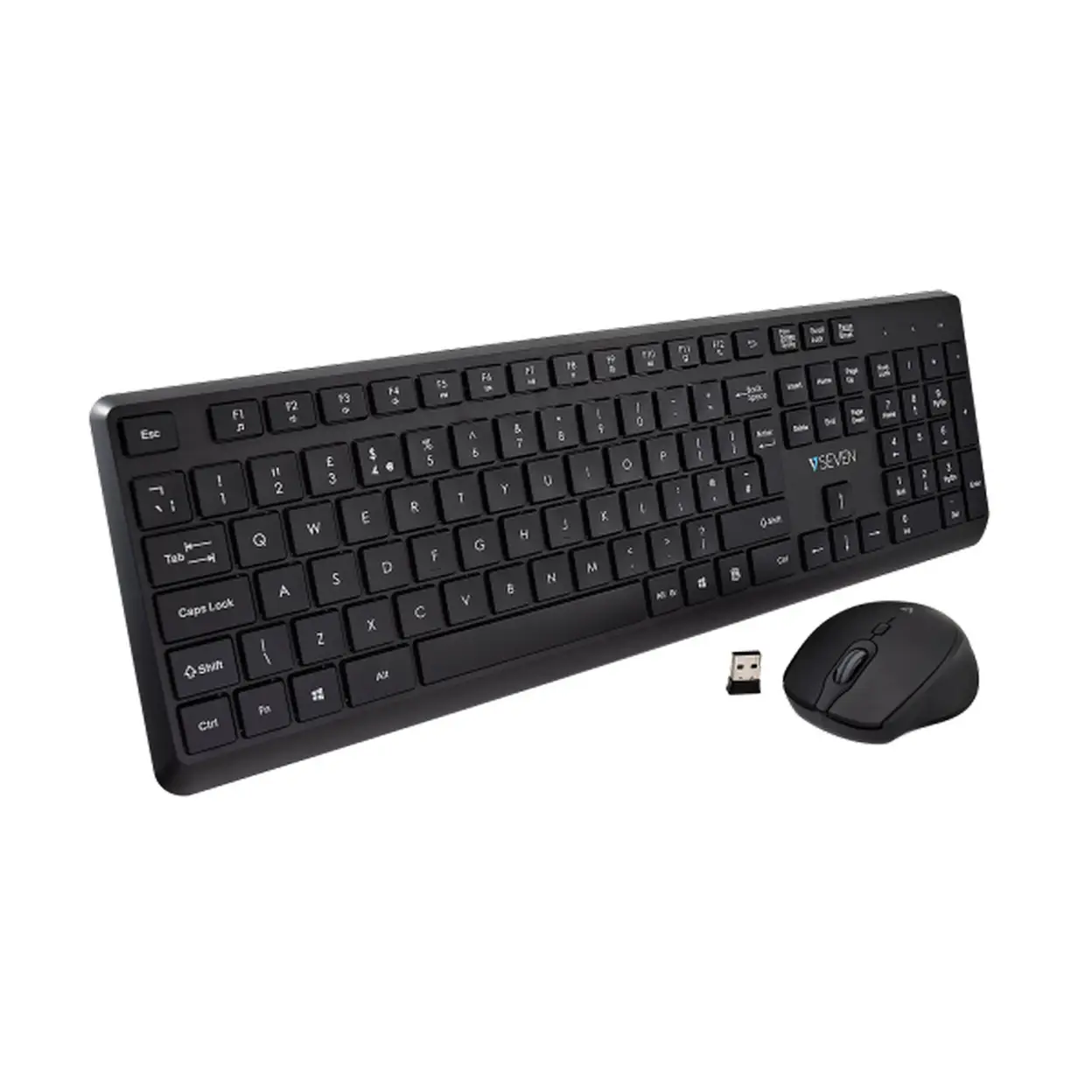 V7 CKW350UK Wireless Keyboard and Mouse Combo with Low-Profile Quiet Keys, Laser-Etched Caps, Silent 1600 DPI Mouse, and Single USB Receiver
