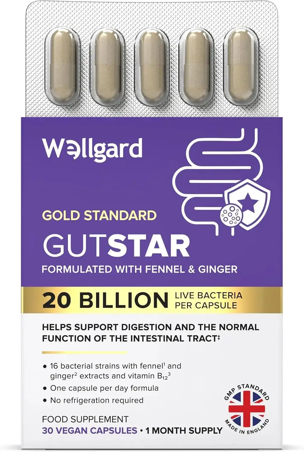 Wellgard Gutstar Digestive Support Vegan Probiotic Capsules - 30 Capsules