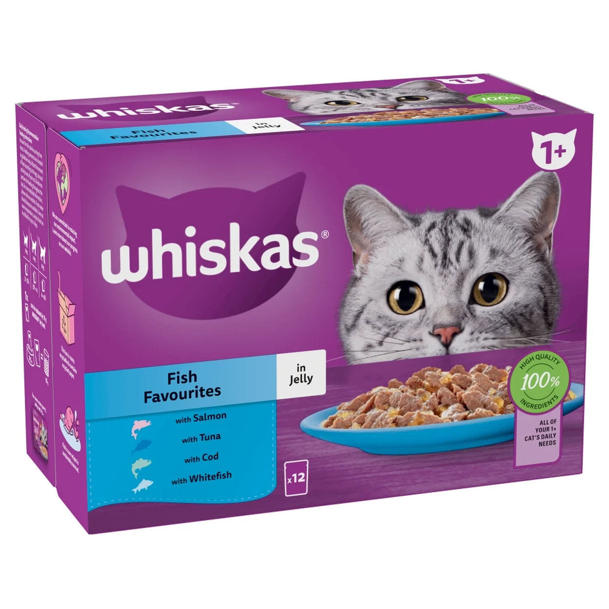 Whiskas 1+ Fish Favourites Adult Wet Cat Food Pouches in Jelly 12 x 85g