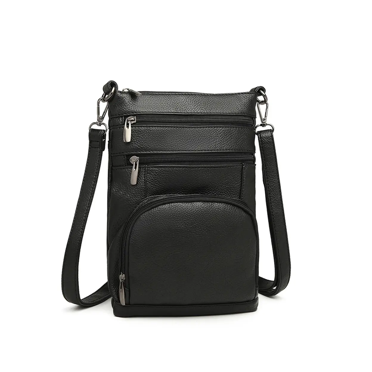 Women Multi Pocket RFID Blocking Crossbody Bag, Small Fashion PU Leather Messenger Travel Organizer Satchel Sling Shoulder Bag (Black)
