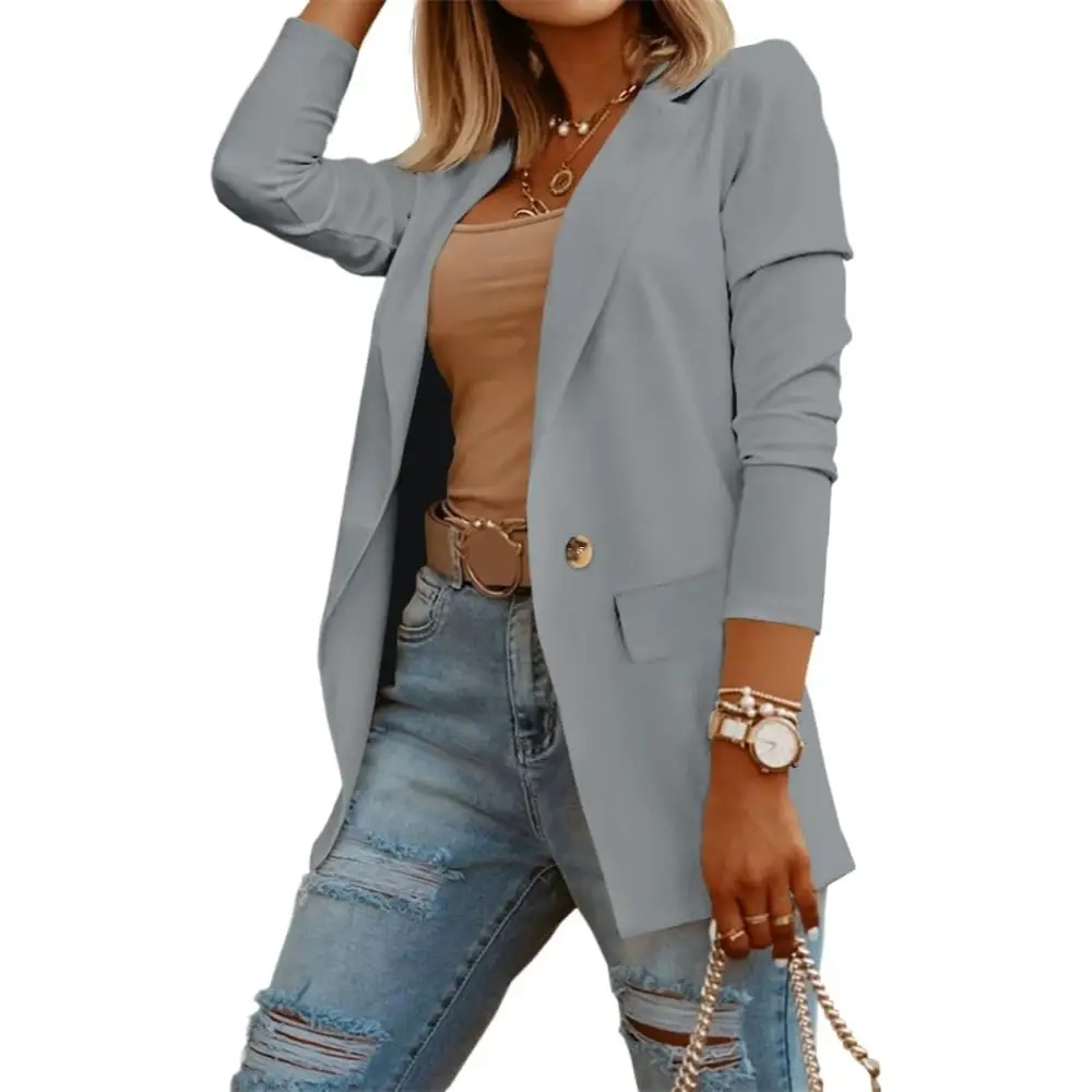 Women's Casual Long Sleeve Blazers Solid Color Knit Blazer Work Office Open Front Blazer Jacket (gray, L)