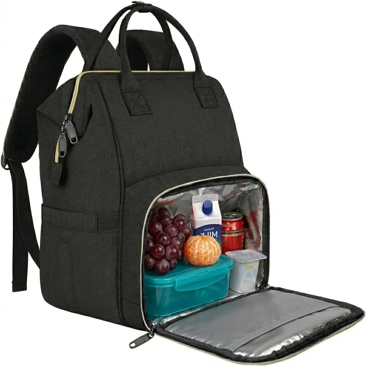 Women’s Travel Lunch Backpack, 15.6Inch Insulated Laptop Backpack with USB Port, Waterproof Cooler Bag for Men College Business, Black
