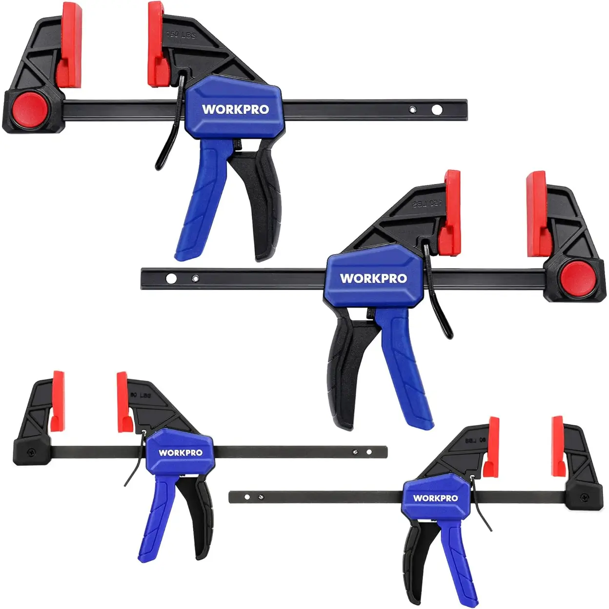 WORKPRO 4-Piece Clamps for Woodworking, 150 mm x2 & 120 mm x2, One-Handed Clamp/Spreader, Wood Clamps Set, Light-Duty Quick-Change F Clamp 23/68 kg