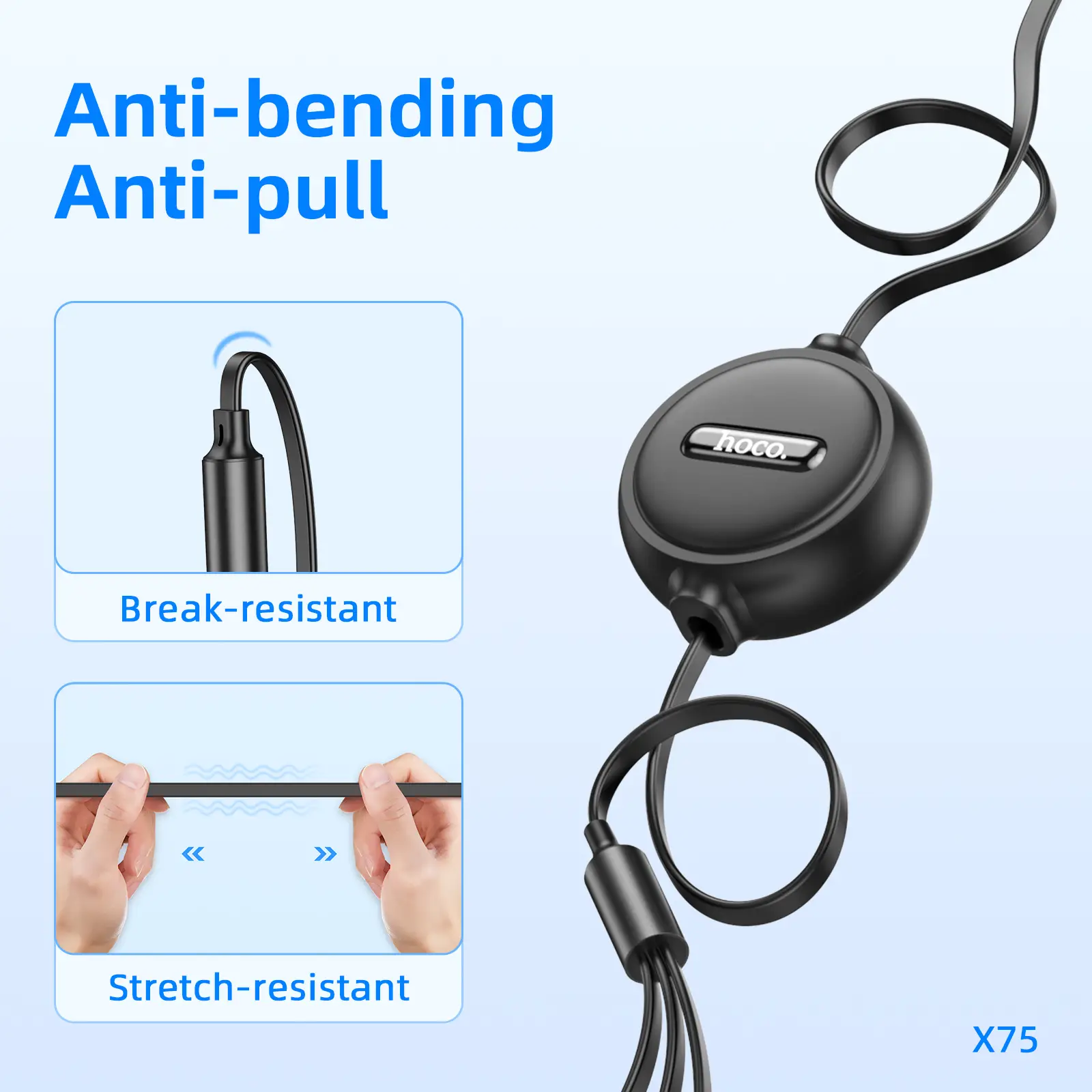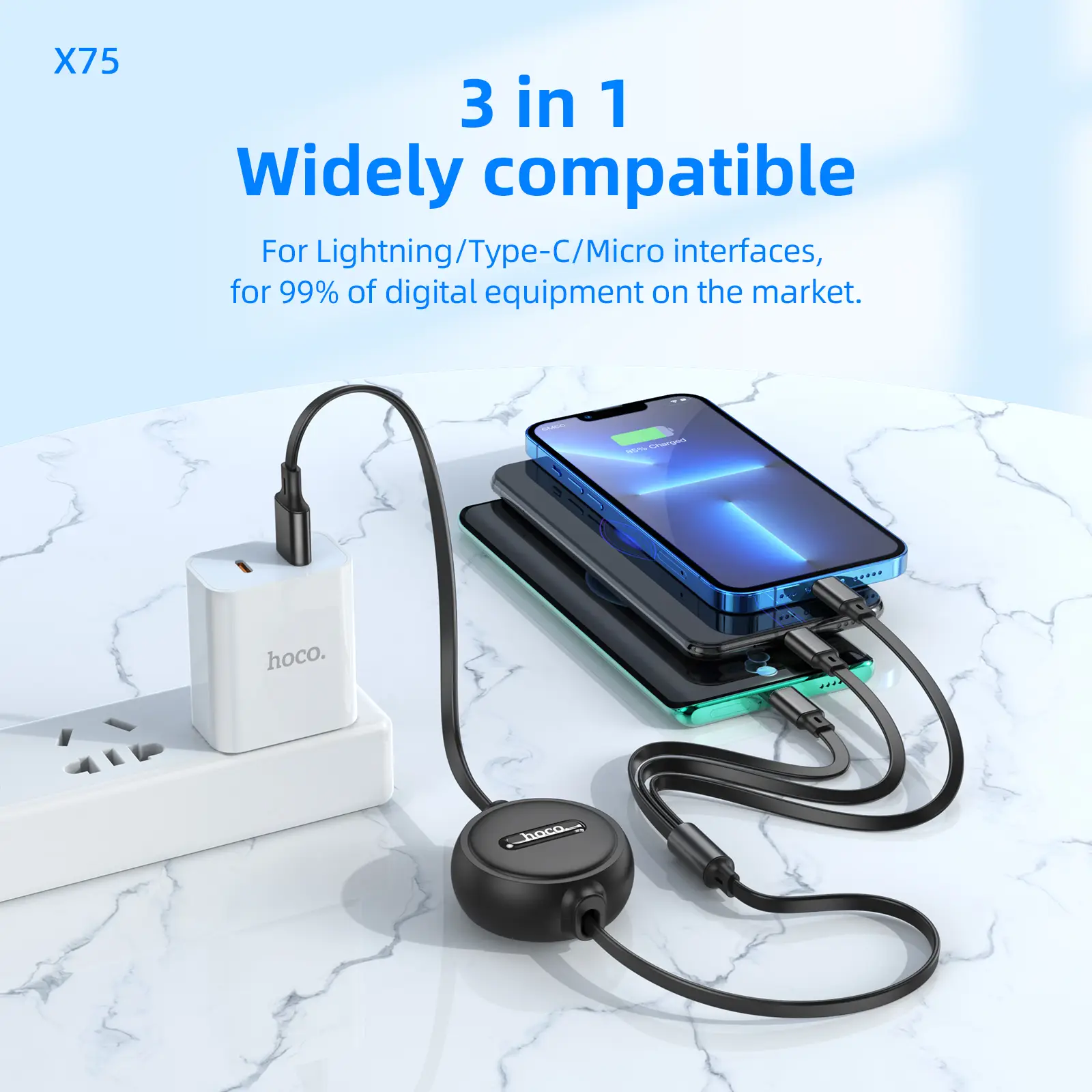 X75 3-in-1 double-pull charging cable(iP+Micro+Type-C)