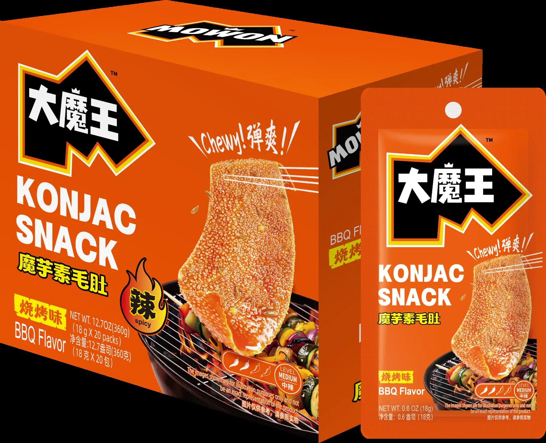 Yanjin Puzi MOWON Konjac Mock Tripe Snack, Barbecue Flavor, 360g (18g*20)