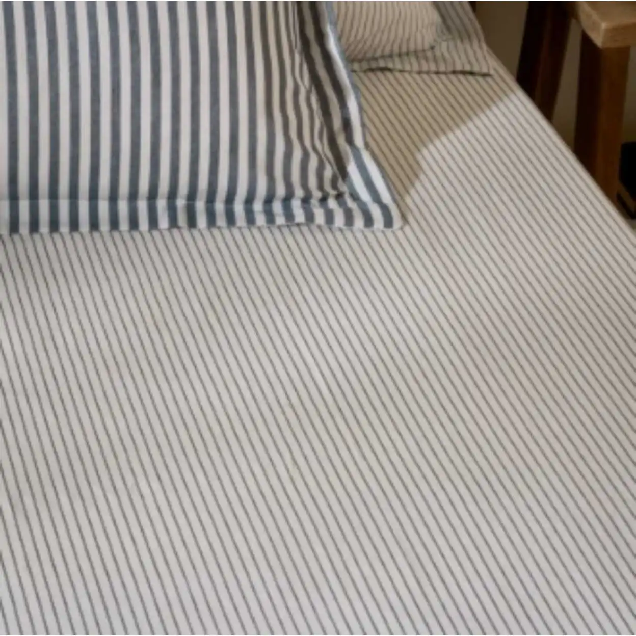 Yard Fitted Sheet Hebden Narrow Stripe 100% Cotton Navy Super King image 2