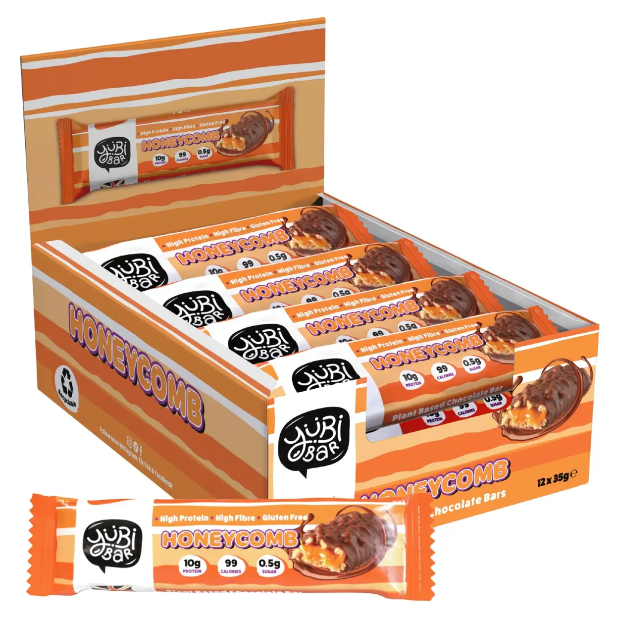 YuBi Bar Protein Nutrition Bar Protein Bars Honeycomb Flavour - 12 x 35g