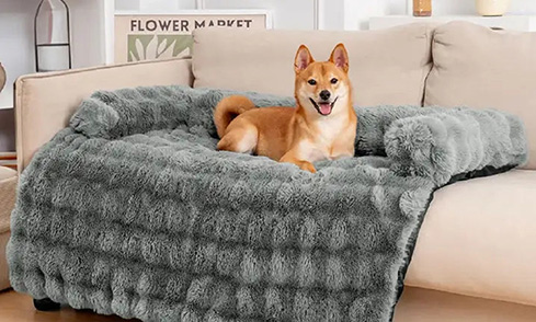 FunnyFuzzy Fluffy Plush Calming Dog Bed Sofa Protective Pet Mat Size L Multicolour