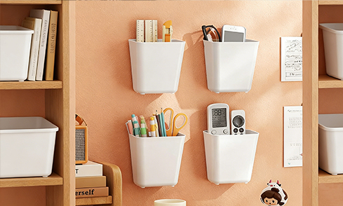 Pack of 4 Self-Adhesive Wall Mounted Storage Boxes, Kitchen Cabinet Door Storage Box, Bathroom Organiser, for Cupboard, Bathroom, Fridge Small Items Organiser Storage Box